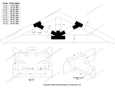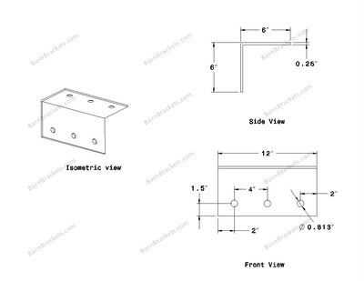 T style Gusset Brackets for 6 inch beams - Centered style holes - BarnBrackets.com