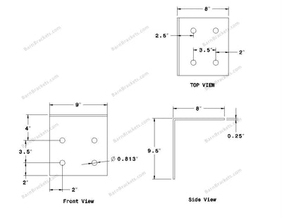 T style Gusset Brackets for 8 inch beams - Centered style holes - BarnBrackets.com