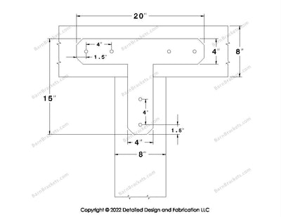 T shaped Brackets for 8 inch beams - Chamfered - Centered style holes - BarnBrackets.com