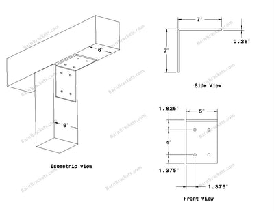 Union Brackets for 6 inch beams - Square - Centered style holes - BarnBrackets.com