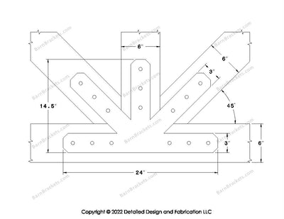 Union Brackets for 12 inch beams - Chamfered - Triangular style holes - BarnBrackets.com