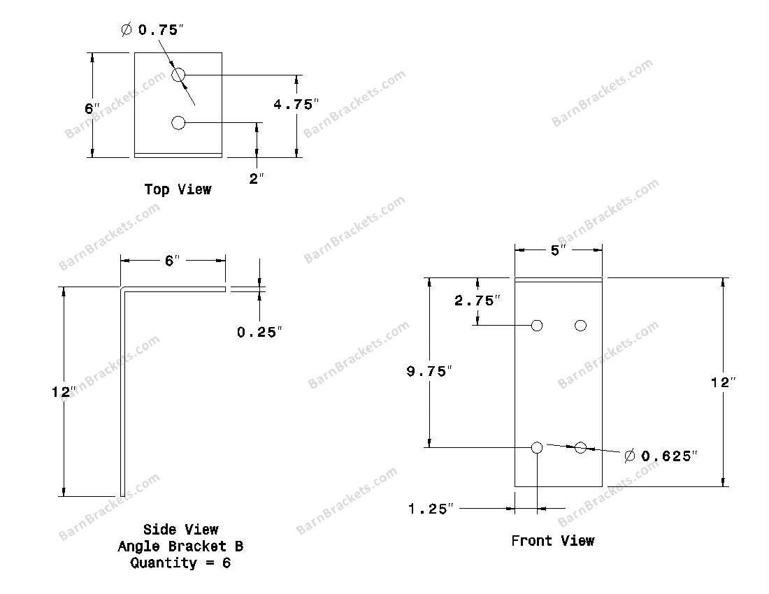 Order consists of 12 individual brackets. 6 of the angle bracket A and 6 of the angle bracket B. See the pictures in this listing for the bracket designs and dimensions. Brackets will be made from 1/4 inch thick steel plate. Brackets will be powder coated black. Shipping is included in the price.